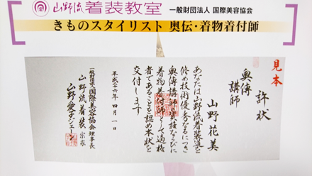 奥伝資格取得者には同時に着物着付師の資格が与えられます。
