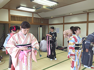 | カルチャーセンターサイドなどと連携をすることで、生徒募集は主催者側にまかせ、着付師は技術の伝達に専念できます。 |